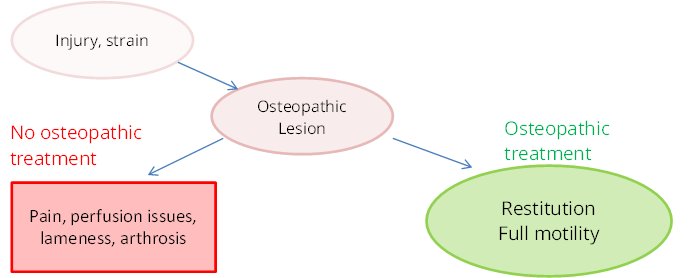 Osteopathy is a manual therapy. A therapist recognizes restrictions in joint movement in range and quality, that will probably lead to evasive movement and later on to pain, inflammation.and lameness. Advantages of osteopathy are, you can treat minimal changes in movement patterns, that are not yet lamenesses and don’t already cause structural damage. It means, that change is so insignificant, a good rider is still able to “ride over” it. You won’t even realize them, maybe an obstructiveness, a clock error or a small problem with a certain lection.