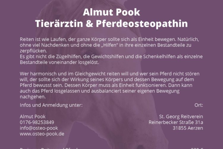 Bodycheck – Reiten als Ganzes soll den Reiter dazu anleiten, seinen Körper als Einheit zu bewegen. Wir sollten nicht separat in Zügel- Schenkel- und Gewichtshilfen denken. Bewegt sich ein Reiter auf dem Pferd korrekt, kann er allein durch die Stellung